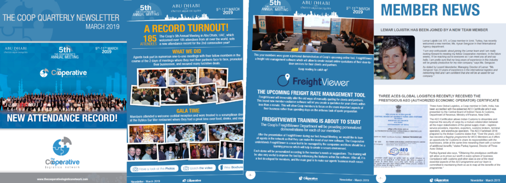We would like to bring to the attention of all our agents that the spring edition of Cooperative Logistics Network’s newsletter is now out and available for viewing on our website. This newsletter will bring you all the news updates about the Coop’s annual conference at Abu Dhabi which was attended by a record number of members. Apart from all the pertinent info about the meeting, you’ll also get to see the group photos taken during the meeting and the video of the highlights of our conference.