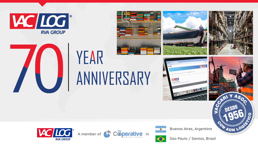 VACLOG, a member of The Cooperative Logistics Network, in Buenos Aires, Argentina, and Sao Paulo / Santos, Brazil, is celebrating its 70th anniversary. Operating through VACLOG – RVA Group, the company specializes in logistics, customs brokerage, and foreign trade services, supporting clients across a wide range of industries.