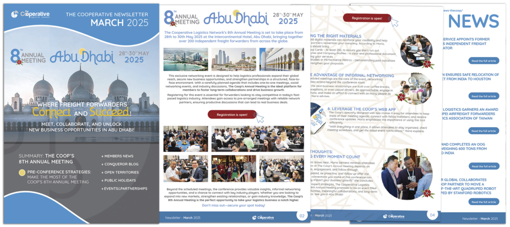 This edition also features six insightful blog posts from The Coop’s website, covering a range of topics designed to help members stay informed, improve operations, and stay competitive in the logistics industry. Finally, the newsletter identifies several cities that still need network coverage, encouraging members to recommend reliable freight forwarders in those regions to help expand The Cooperative Logistics Network’s global footprint.