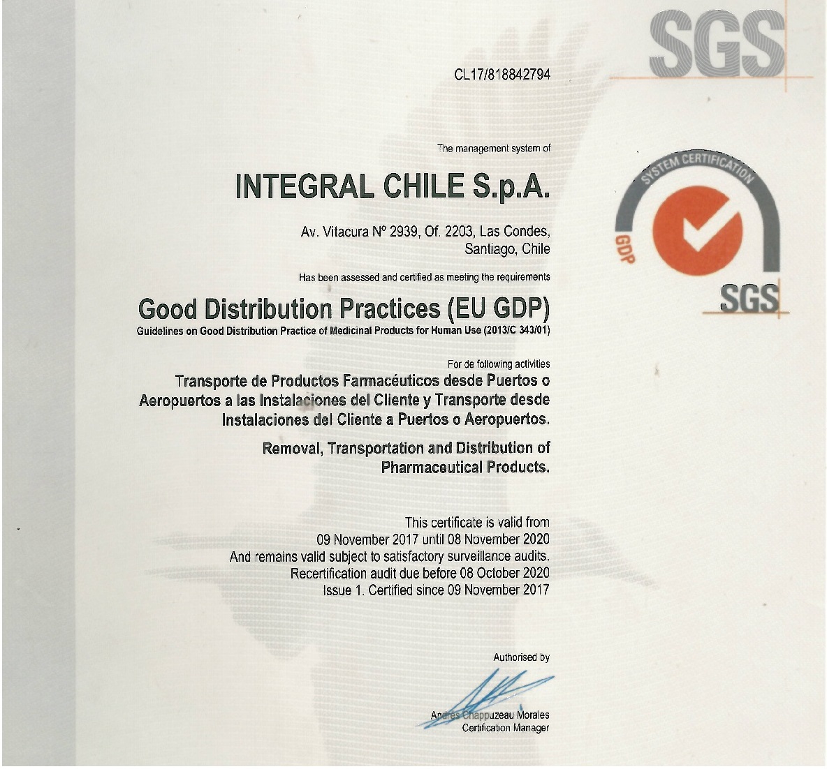 Congratulations to Integral Chile on their new venture and wishing them the best for the future!